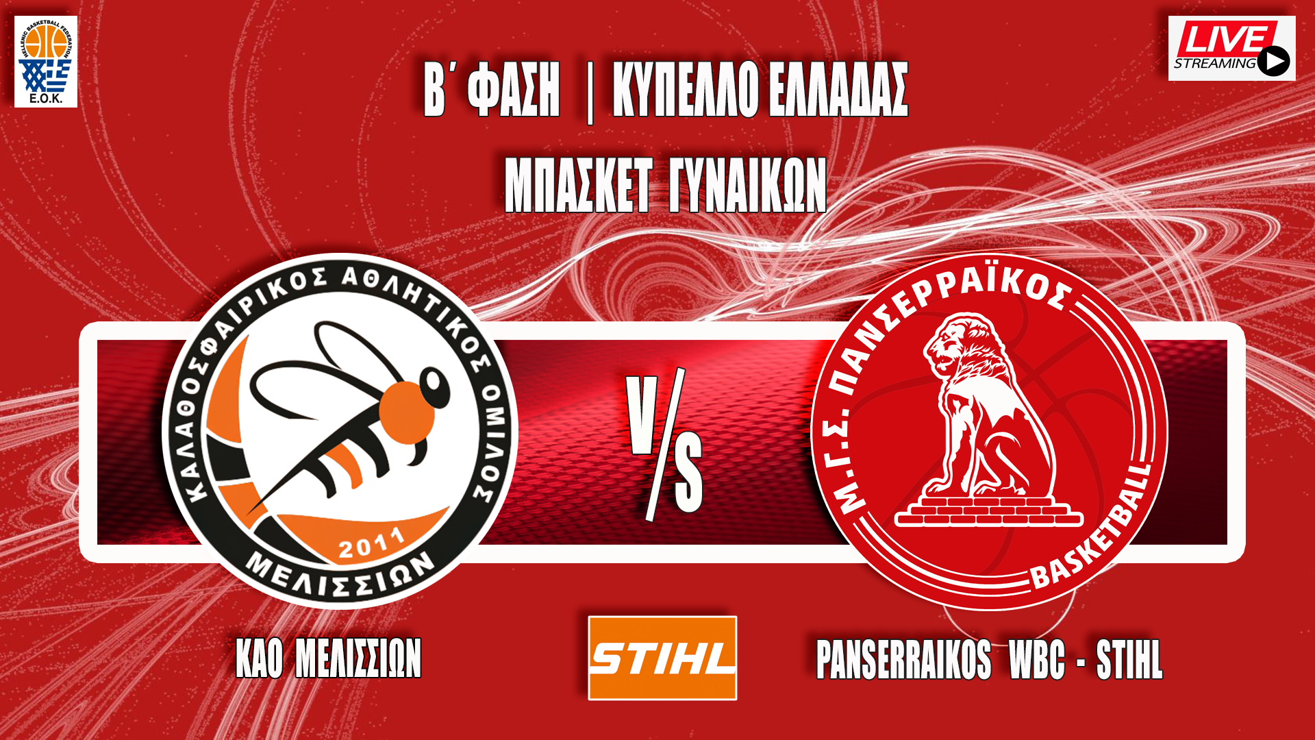 Ο Πανσερραϊκός, αντιμετωπίζει τον ΚΑΟ Μελισσίων, για την 1η αγωνιστική, της Β’ φάσης του κυπέλλου Ελλάδας, στο Κλειστό Γυμναστήριο Μελισσίων, στην Αθήνα την Κυριακή στις 13:00.